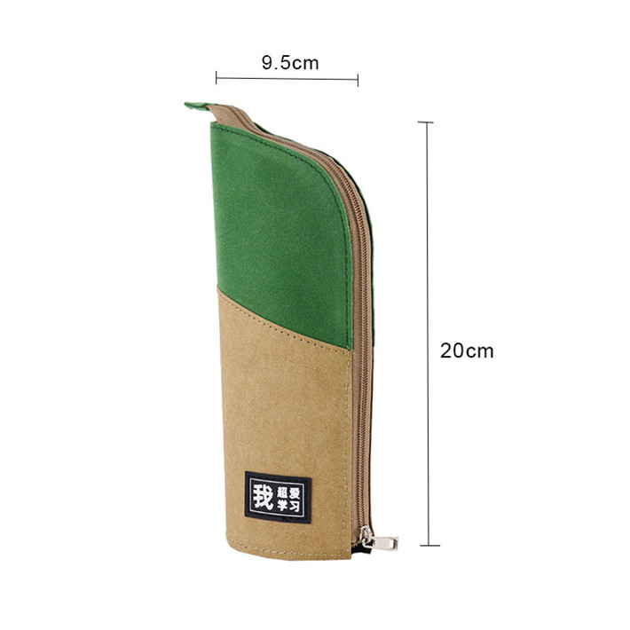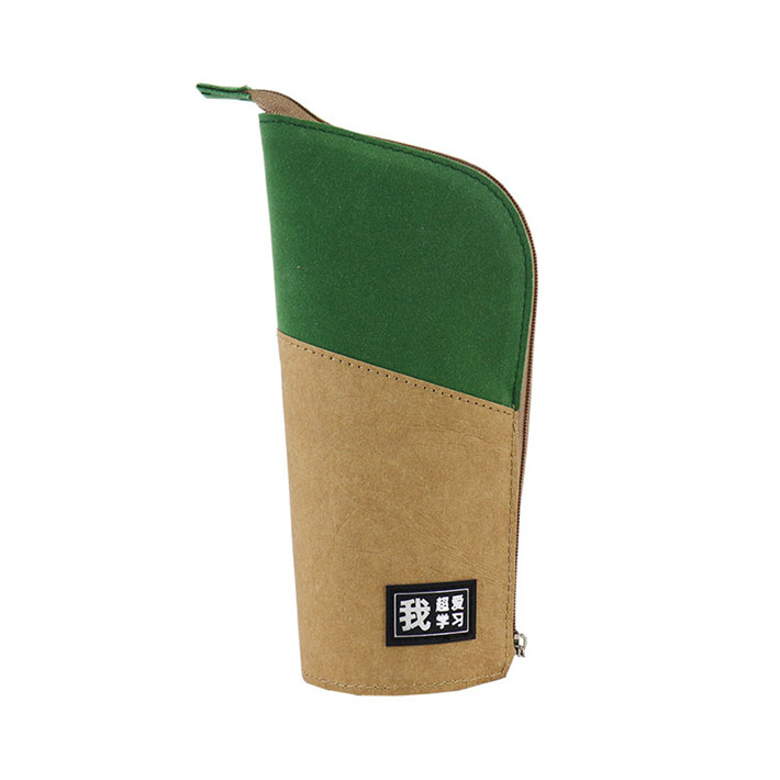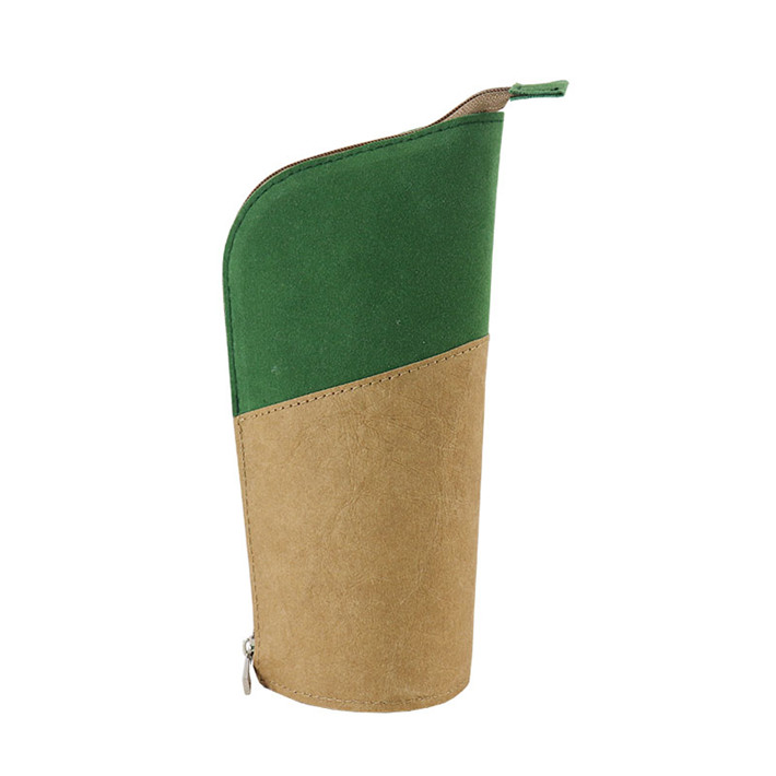 新款極簡主義站立筆筒多功能進口牛皮紙拼接桃皮絨拉鏈包定制