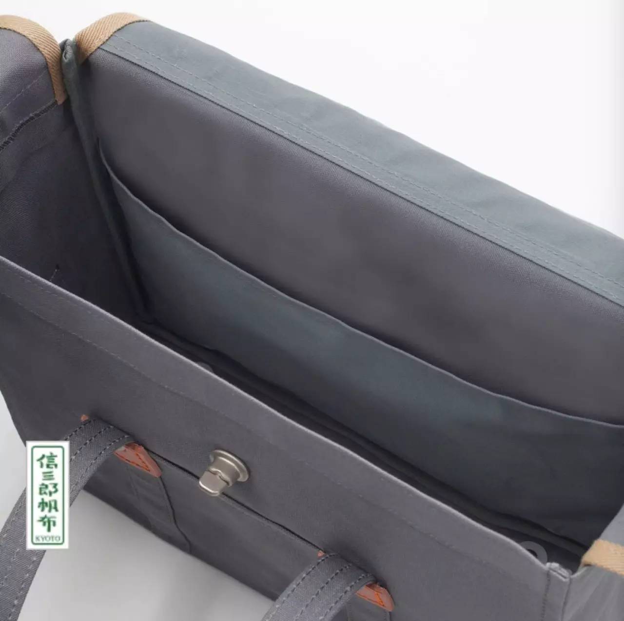 大熱款式是這個(gè)正面寫著“布包”的系列。包在日文里包寫作“鞄”。據(jù)說(shuō),這個(gè)字是明治時(shí)代東京一家皮包店設(shè)計(jì)的。信三郎就想,這個(gè)“革”字不適合他的帆布包,那他是不是也可以造一個(gè)字出來(lái)做品牌標(biāo)志呢?自此“布包”系列就誕生了。