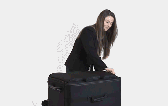 現(xiàn)在就有這么一個神奇的旅行箱,外觀和普通箱子沒差,打開拉鏈之后,如上圖所示:將箱體兩側(cè)的伸縮拉桿打開,再拎起中間的軟包疊放架,掛好,一個擺放整齊、井然有序的隨身衣柜瞬間出現(xiàn)。行李箱蓋板上的三個拉鏈口袋,瞬間也成了臨時置物袋。