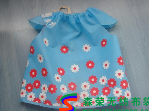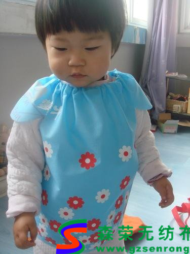 到此一個無紡布購物袋就改裝成為一個小朋友吃飯穿著的保潔衣服了。